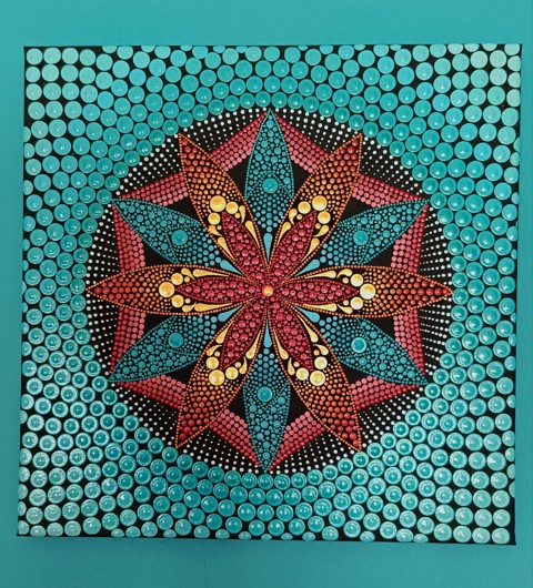 Mare de flori turcoaz (culori metalice) - mandala punctată