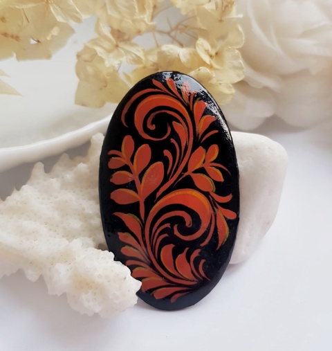 Brosa pictata manual brosa lemn brosa cu motive florale brosa vintage etnica cadou craciun bunica sotie secret santa
