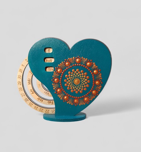 Mini calendar perpetuu în formă de inimă - aur roșu-turcoaz