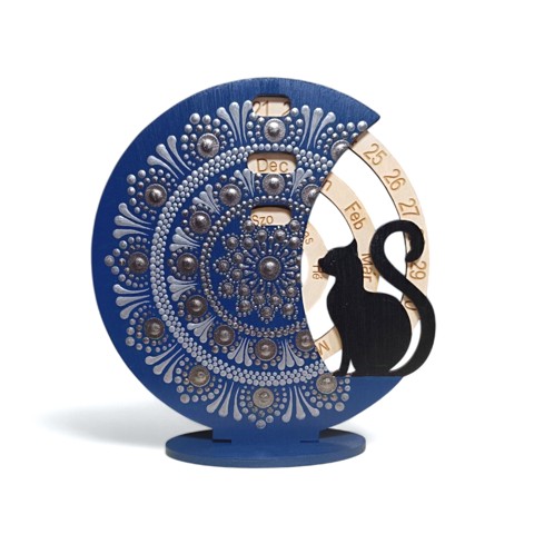 Calendar perpetuu Almond cu pisică - albastru-argintiu