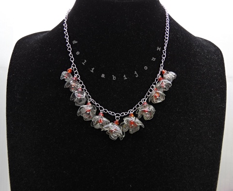 Colier statement unicat cu flori translucide și cristale (cod1319)