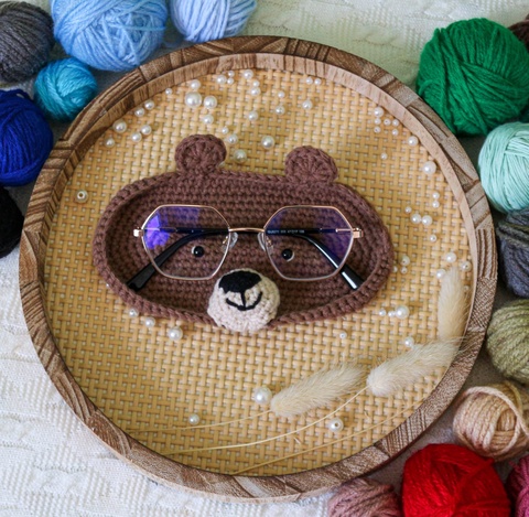 Suport croșetat pentru ochelari – Ursuleț simpatic