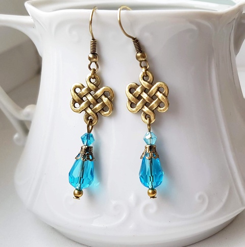 Cercei lungi atarnatori cercei cu cristale albastre cercei atarnatori albastri cercei artizanali vintage cadou Craciun