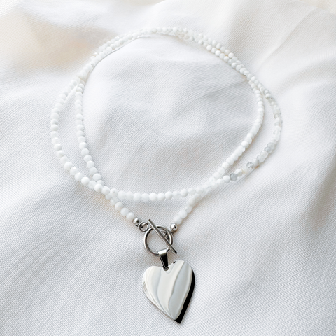 Colier / choker dublu la baza gatului cu piatra lunii si pandativ inima