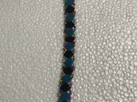Brățara macrame handmade- turcoaz și negru cu margele colorate