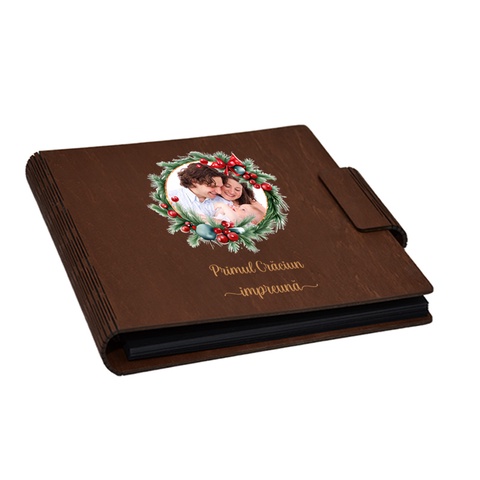 Album foto, coperta lemn, personalizat, Primul Craciun impreuna, Maro, Piksel, 22x22 cm