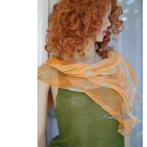 MULL-KENDŐ / portocaliu-batik - eșarfă din tifon batiked