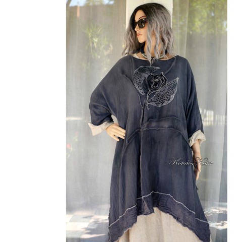 SHABBY ROSE - tunică artsy cu aplicații / antracit