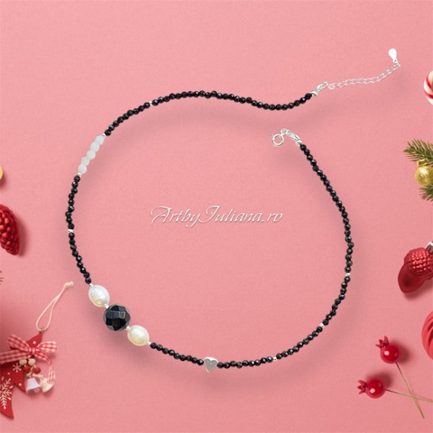 Colier handmade argint și pietre semiprețioase "Fantezie monocrom"