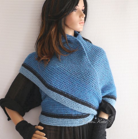 CLAIRE - șal exclusiv tricotat manual / albastru păun