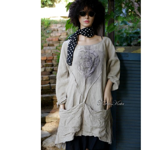 KERTÉSZ-TUNIKA - tunică len artsy, design cu aspect stratificat-ruha