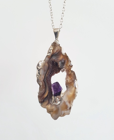 - Material: cuart, elemente metalice argintate, ametist, agata