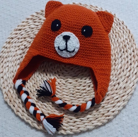 Căciuliță croșetată vulpiță – pentru copii 6 luni–2 ani, culoare maro cărămiziu, fir acrilic moale