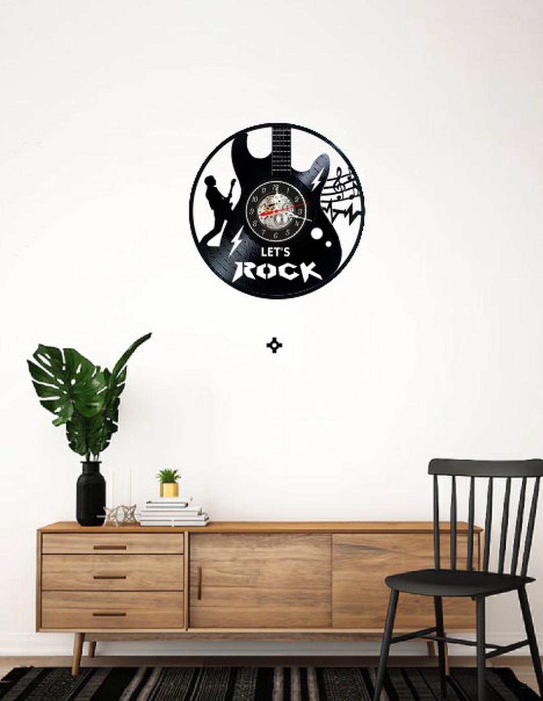 Această operă de artă vibrantă celebrează spiritul neîngrădit al rock’n’roll-ului cu un design exploziv, ce combină chitara electrică, atitudinea rebelă și pasiunea pură pentru muzică, toate sculptate manual dintr-un disc de vinil autentic (LP). Ceasul „Let's Rock” este mai mult decât un simplu cronometru; este o declarație sonoră și vizuală ce aduce energia unui concert live pe peretele tău.