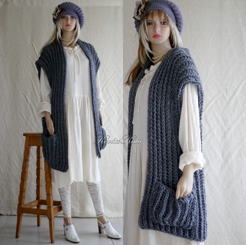 BETTI - vestă tricotată manual din lână, pulover / gri