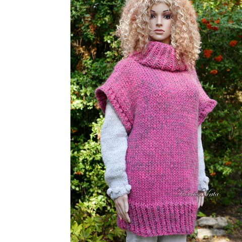 "NIKI" ALPAKA - vestă cu pulover maxi extra-subțire tricotată manual / roz