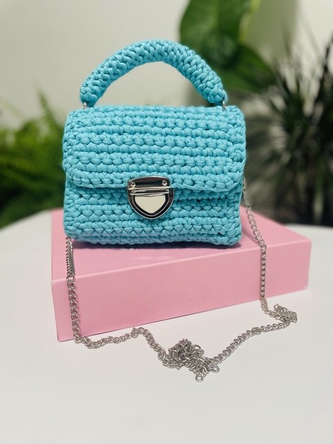 Poșetă croșetată manual din fir de bumbac – turcoaz fermecă