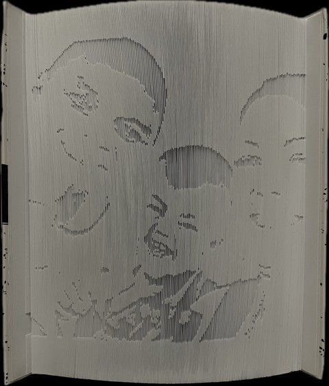 Sculptură de carte portret cu 3 fețe bazată pe o fotografie unică