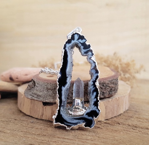 Pandantiv unicat barbati Pandantiv agata Pandantiv cristal stanca colier pietre semipretioase Cadou Craciun secret santa
