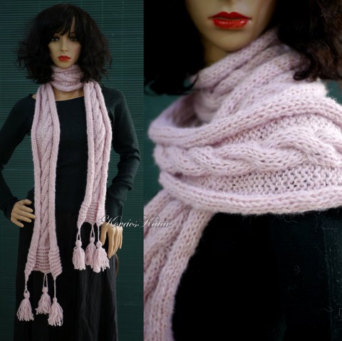 CSINGILINGI - eșarfă tricotată manual din alpaca cu ciucuri / roz