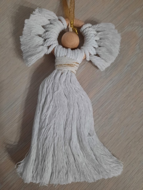 Ingeras din macrame , lucrat manual pe cerc de lemn. Are agatatoare si aproxiativ 20 cm .
