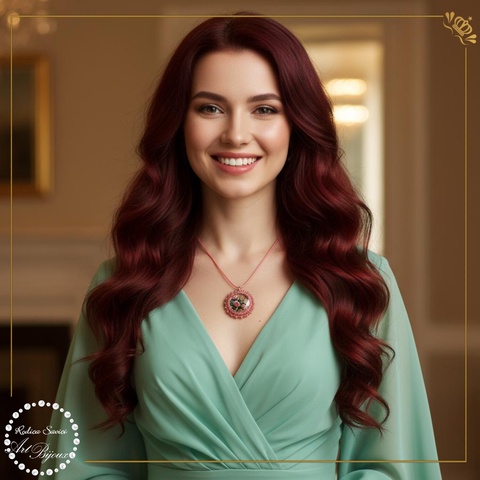 - Material: cabochon sticlă, mărgele, bază șnur cerat, închidere metalică tip carabină, lănțișor prelungitor
