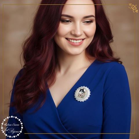 - Material: cabochon sticlă, mărgele, ac de broșă cu sistem de siguranță