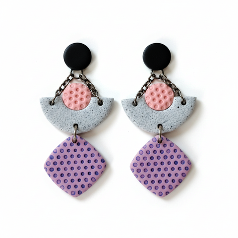 Cercei lungi roz cercei moderni gri si roz cercei geometrici cercei atarnatori tija bijuterie contemporana cadou Craciun