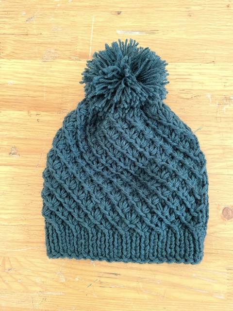Caciula tricotata manual, turcoaz inchis, marime adult
