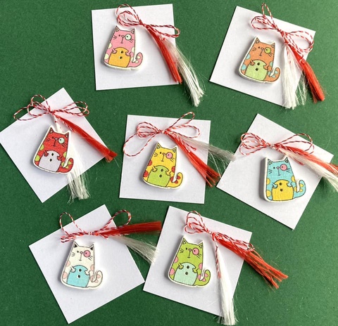 Martisor pisica, brosa din lemn
