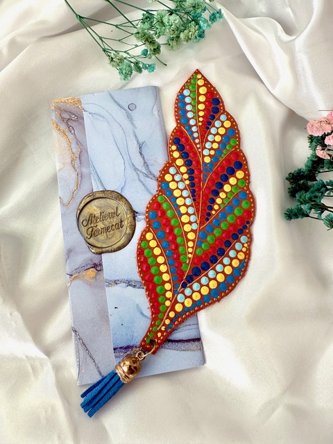 Semn de carte din piele naturala, pictat manual "Leaf"