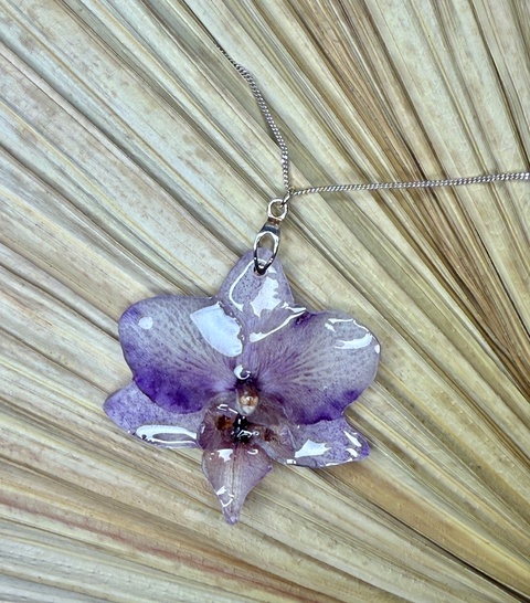 Pandantiv din argint si floare naturala orhidee in rasina