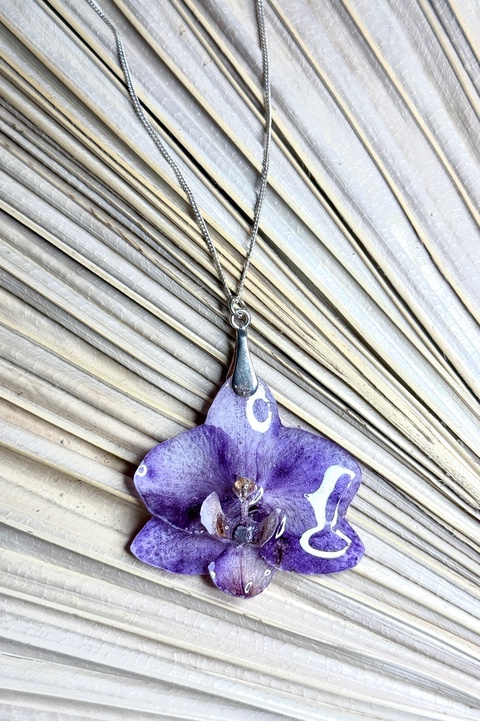 Pandantiv orhidee in rasina uv cu montura argint 925