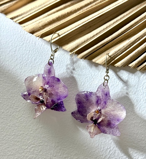 Cercei orhidee mini naturali în rășină montura argint farmec delicat al florilor presate