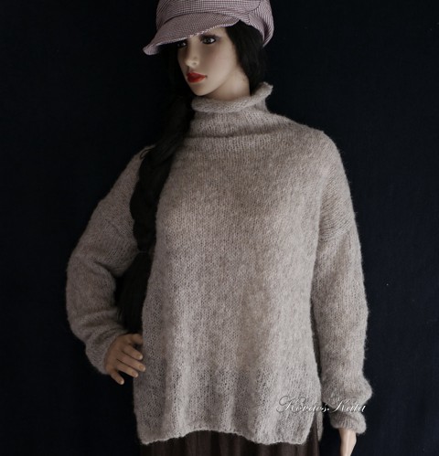 "TEKNŐC"ALPAKA-PULCSI - pulover exclusiv tricotat manual / gri