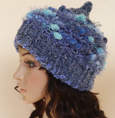 LUCA-SAPI / albastru - Șapcă din lână cu design boem tricotat manual