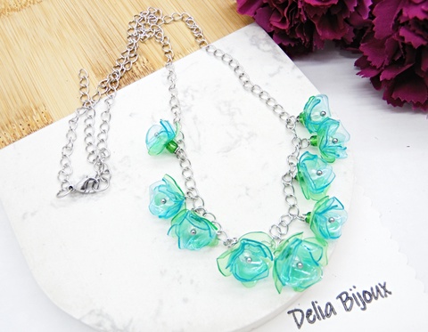 Colier statement unicat cu flori din sticle plastic reciclate (cod1328)