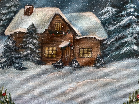 - Material: pânză, magnet, acrilice, vernis, vopsea contur, sclipici