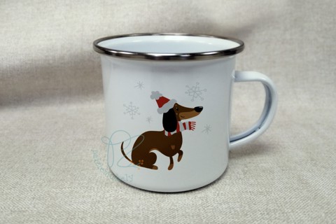 Cană cu smalț de Crăciun de iarnă - Moș Crăciun maro Porumbel