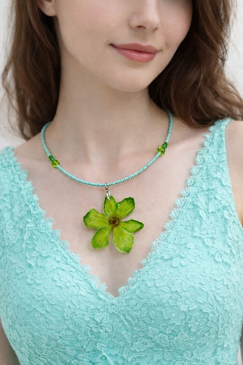 - Material: flori naturale, margele sticla, rasina, sarma