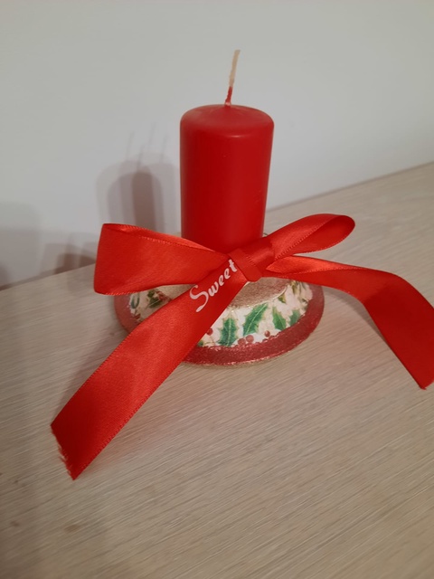 Suport rotund si lumanare rosie