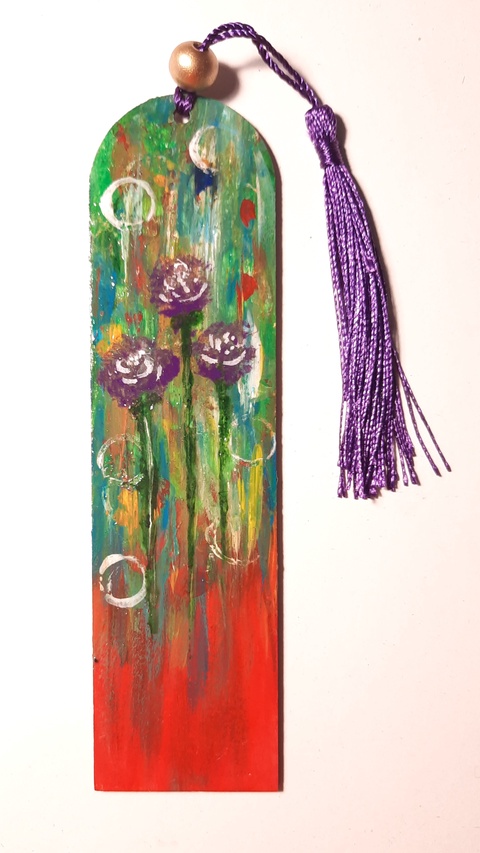 Semn de carte pictat manual - "Floricele mov"