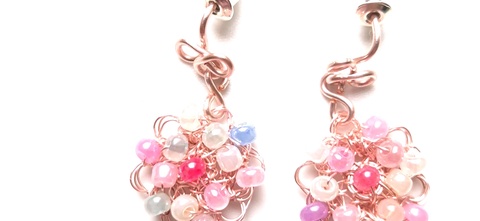 Cercei roz din cupru cu margele de sticla colorate pastel