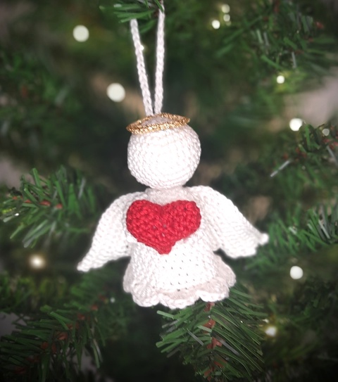 Ornament de Crăciun - Îngeraș cu inimă roșie croșetat manual