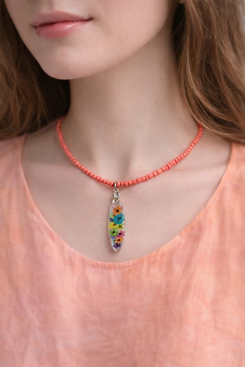 Colier-pandantiv cu flori naturale 01154