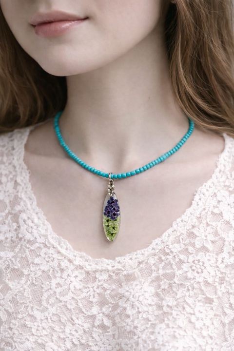 Colier-pandantiv cu flori naturale 01155