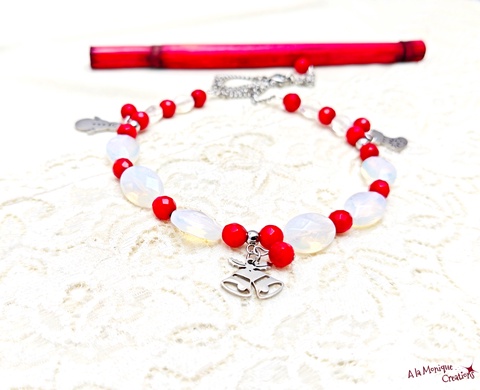 Colier de Craciun cu coral rosu si opalit