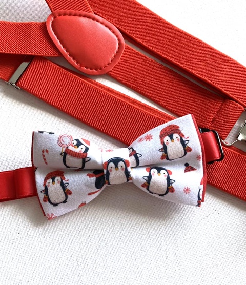 Set copil, papion cu pinguini si bretele rosii, de Craciun