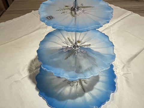 Suport Etajat din Rășină – Albastru Pastel cu Flori Presate - Piesă Unicat Handmade