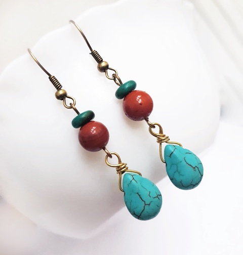 Cercei vintage cercei boho Cercei lacrima turcoaz cercei atarnatori cercei lungi cercei turcoaz cadou Craciun bijuterie